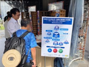 9月18日、大阪・関西万博「TEAM EXPO 2025 共創チャレンジ」にて、弊社独自の「エネルギーマネジメントシステム(EMS)」のプレゼン発表およびブース展示を行いました。当日は、EMSの実績や、EMSが実現する未来についてご紹介し、多くの方々にご覧いただきました。発表・展示をご覧いただいた皆さまからは、さまざまなご質問やご意見をいただき、誠にありがとうございました。