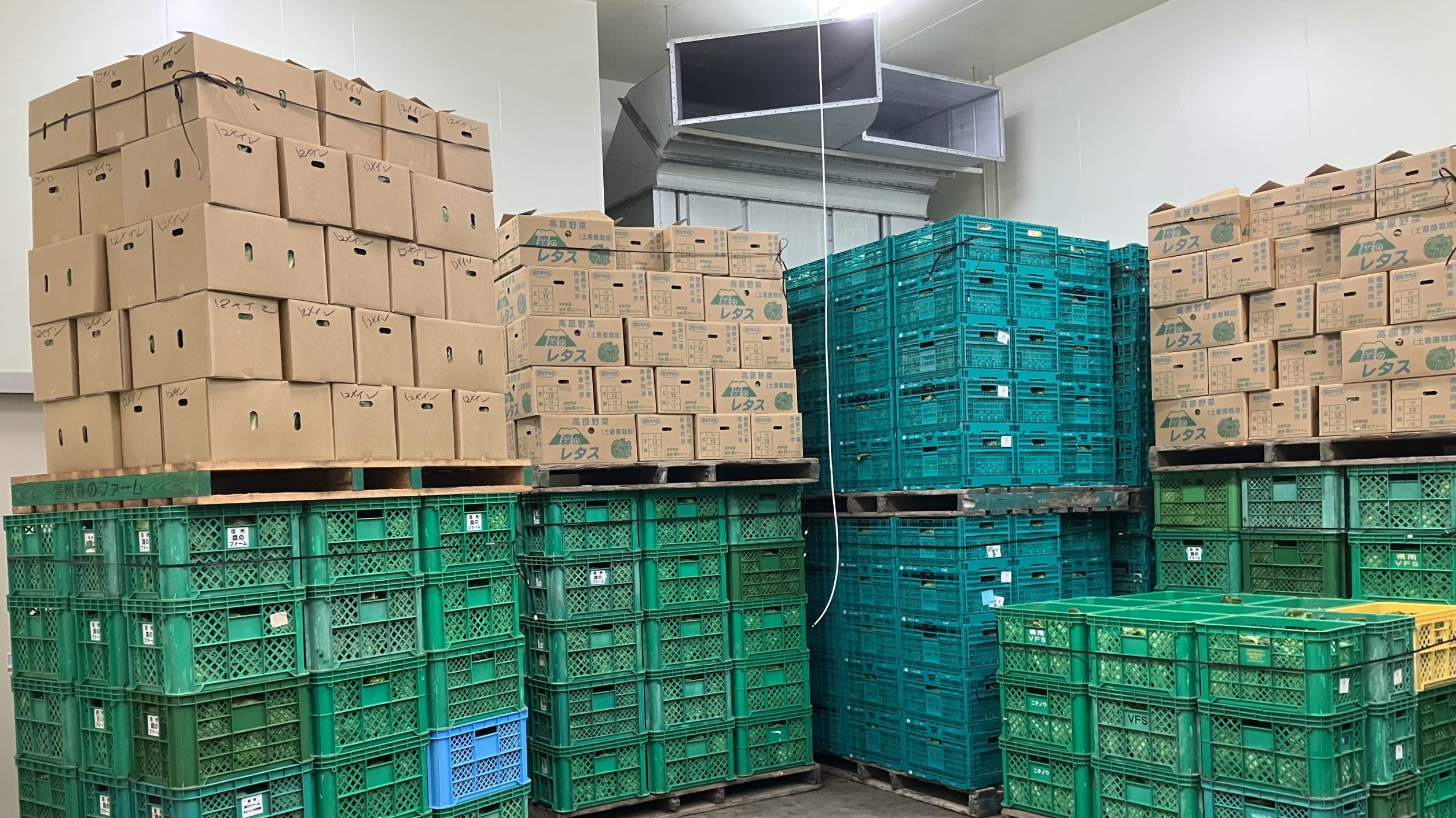 倉庫型高湿度冷蔵庫の導入によって長野県野辺山高原野菜の鮮度保持の延長を実現。レタスにおいては夏場の収穫でも4日間に及んで高品質を実現。